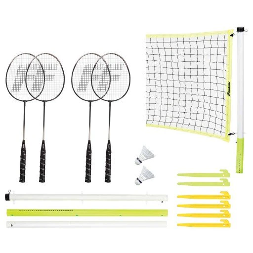 Franklin’s Advanced Badminton set is perfect for family parties, day trips to the beach, or simple backyard entertainment. The set includes enough equipment for up to four individuals, so play between two people or in teams of doubles. Two A-grade shuttlecocks are included along with a 20 foot net that is easy to assemble and features four-sided tape construction and mounting hardware that keep the net taut. The rackets are of the best quality and feature a tempered steel shaft, tight stringing, and a soft-touch padded grip. Also included is a deluxe storage bag making it easy to keep all the net hardware organized and secure when not in use.Â