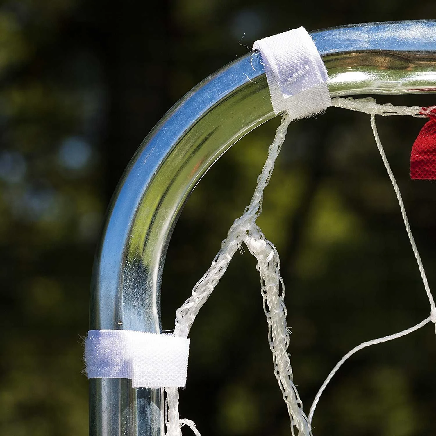 The durable 4″ x 4″ square net uses self-stick strips that attach with ease, maintain the goal net in place and will keep soccer balls from flying across your yard while you develop your scoring skills.