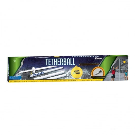 Tetherball is a classic North American game and Franklin’s Swingball Tetherball Set has everything you need to introduce the game to your kids and their friends. Tetherball is fun for kids of all ages and a great way to spend time outside. Set up Franklin’s Swingball Tetherball Set and get prepared for the first of many epic battles. This set includes a welded steel pole with baked enamel, a vinyl ball with a mini pump and needle, a 10″ ground sleeve for stability and a thick cotton-core rope.