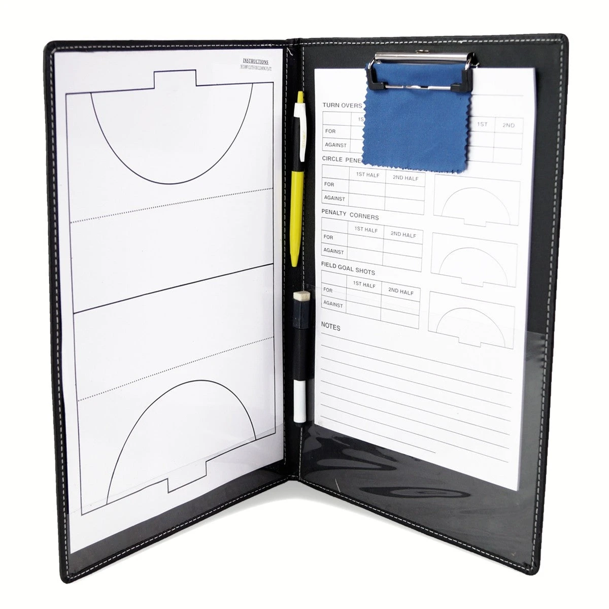 A durable, high end leather clip board for Field Hockey Coaches. Includes: – White Board – Stat Sheets – Dry Erase Marker – Dry Erase Cloth – Pen