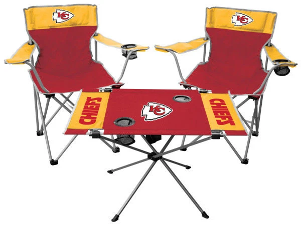 Tailgating gear is an essential part of any sporting event! Whether your meeting your friends at the Stadium to watch a National Football League game or you just want to show your support for your favorite team at a backyard BBQ, these items are the perfect tailgate accessories. This NFL kit features two kickoffs chairs, an endzone table, and a transport bag with team logo. Ā
