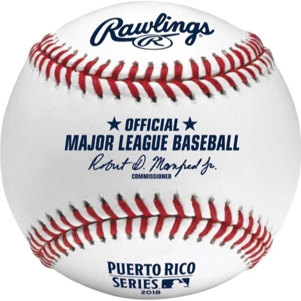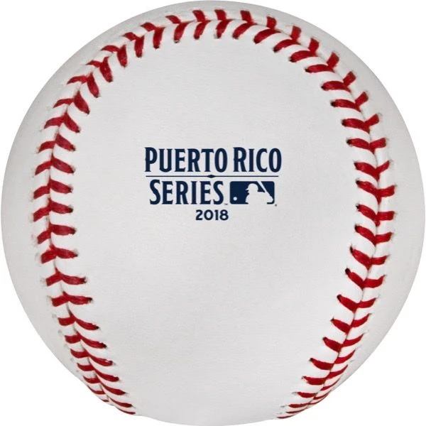 This is the Official ball used on-field during the MLB® Puerto Rico Series®. The Series took place April 17-18, 2018 in San Juan, Puerto Rico. The ball features the log of the Puerto Rico Series® including the commissioners signature.