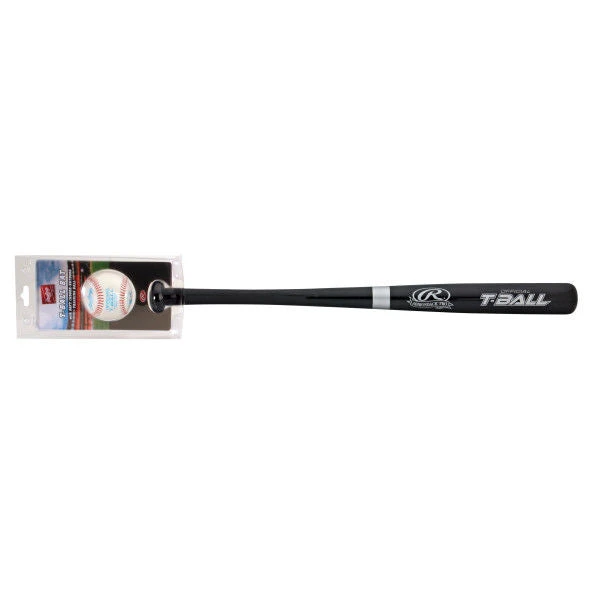 This wood T-ball bat combo set includes a TVB softcore baseball. The bat itself features a Pro two-tone finish with Gold Pro Ring and stamping.