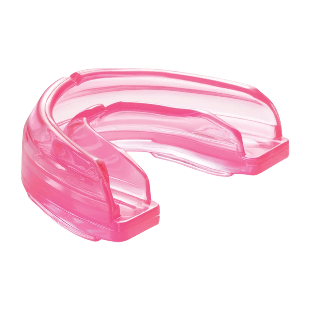 The Braces mouthguard offers essential protection for athletes with braces, specifically designed to conform to upper brace brackets for instant comfort and prevention from lacerations. Made with 100% medical-grade silicone, it adapts to changes in mouth structure as teeth adjust. Available in strapped or strapless versions.