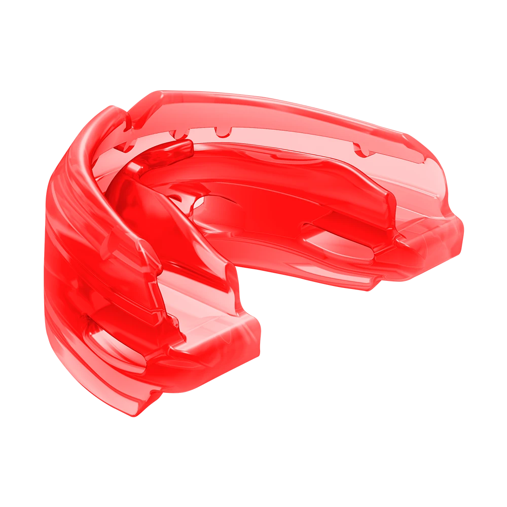 Protection for athletes with braces seeking protection for both upper and lower teeth. The Double Braces mouthguard is specifically designed to conform to upper and lower brace brackets for instant comfort and prevention from lacerations. Made with 100% medical-grade silicone, it adapts to changes in mouth structure as teeth adjust. Available in strapped or strapless versions.